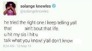Horas mais tarde Solange publica na sua página do Twitter a seguinte mensagem: